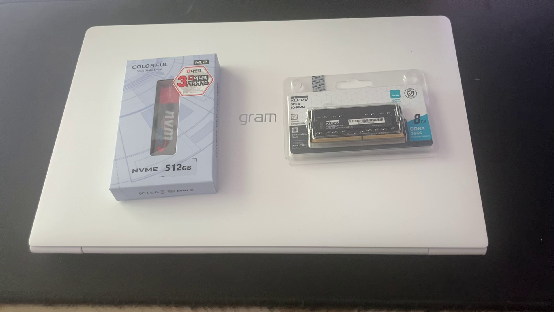업그레이드에 사용할 부품인 램 8GB DDR4-2666 PC4-21300 / M.2 NVMe SSD 512GB